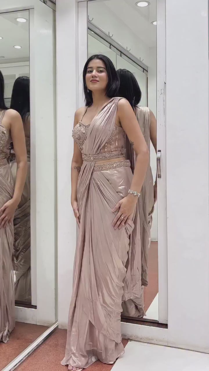 this dusty pink saree for my wedding festivities was a dream come true! The fabric has a gorgeous shimmer and the zari work on the border and blouse is so rich and intricate. The team at LabelByPuja made sure the blouse fit was flawless, and it felt so light to wear even with the heavy embroidery. I felt like a true Gujarati queen! The attention to detail is truly unmatched."