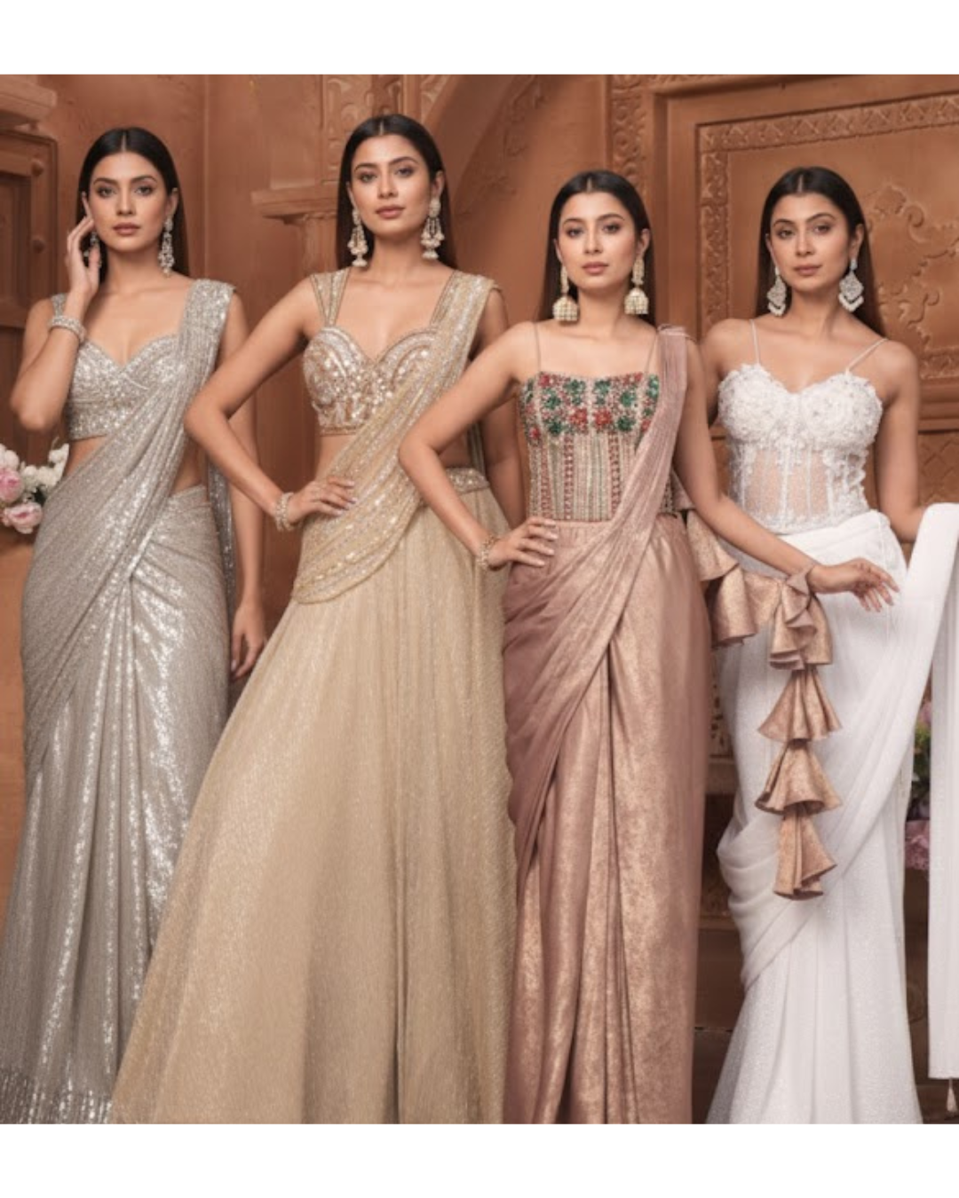 this dusty pink saree for my wedding festivities was a dream come true! The fabric has a gorgeous shimmer and the zari work on the border and blouse is so rich and intricate. The team at LabelByPuja made sure the blouse fit was flawless, and it felt so light to wear even with the heavy embroidery. I felt like a true Gujarati queen! The attention to detail is truly unmatched."